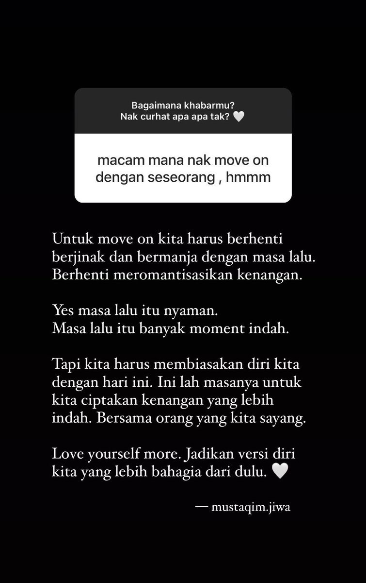 Semakin kamu berusaha untuk melupakan maka akan semakin kuat perasaan itu terasa dalam hati. Dengan berdoa kamu mendapatkan waktu tenang yang layak dan yang kamu perlukan. Saya terlampau sayang kan dia sampai termakan diri apa yang dia nak semua saya bagi seperti dari segi kewangan saya tak pernah kedekut tapi saya cuma sedih ni balasan si dia kepada saya saya tidak tahu apa salah saya sampai saya dipermainkan pernah tutup hati untuk.